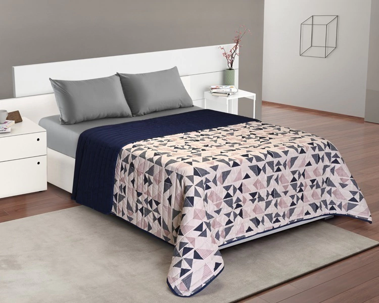 Cubrecama Estampado Reversible - Grid / Marino