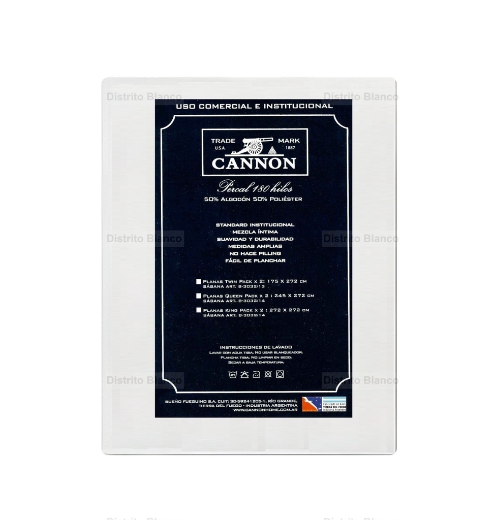 Pack Sábana Plana Cannon Institucional x 2 unidades. (Un pack sirve para 1 cama, incluyendo 2 sabanas planas)